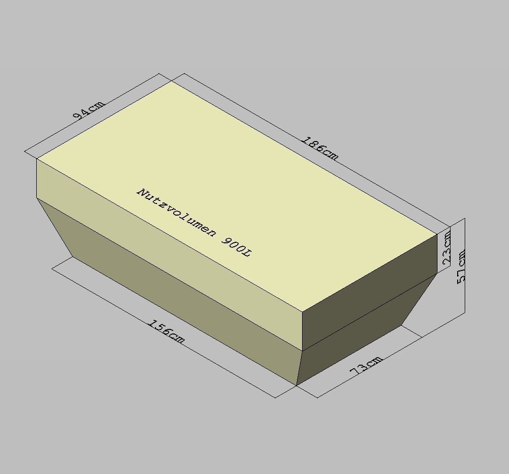 - Nenninhalt 900 Liter: 40-50 kg (loses Heu)